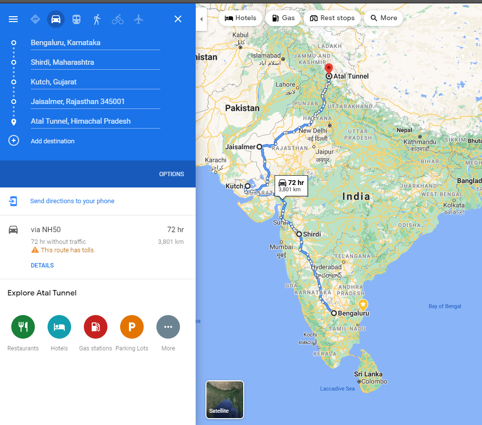 Solo unplanned motorcycle trip covering 7k kms in 44 days starting from Bangalore via Maharastra, Gujarat, Rajasthan, Delhi, Punjab, Himachal